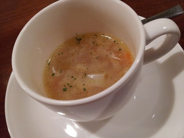 ランチコース(1500円)をチョイス、前菜にスープ&サラダです。
